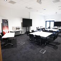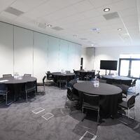 We have three meeting rooms (accommodating 10–50 people) and a conference centre for up to 180 guests, all furnished with modern furniture and staging.